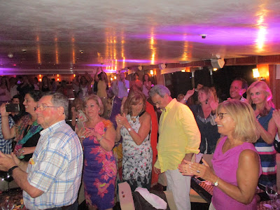 Levantou âncora cerca de uma hora depois e os convivas foram encaminhados para o sala de refeições, onde decorreu um requintado jantar sentado, animado pela cantora Susana Guerra e pelo grupo de bailarinos Move it. Cantou-se os parabéns ao Eduardo, com o assoprar das velas do bolo de anos e champagne para brindar.